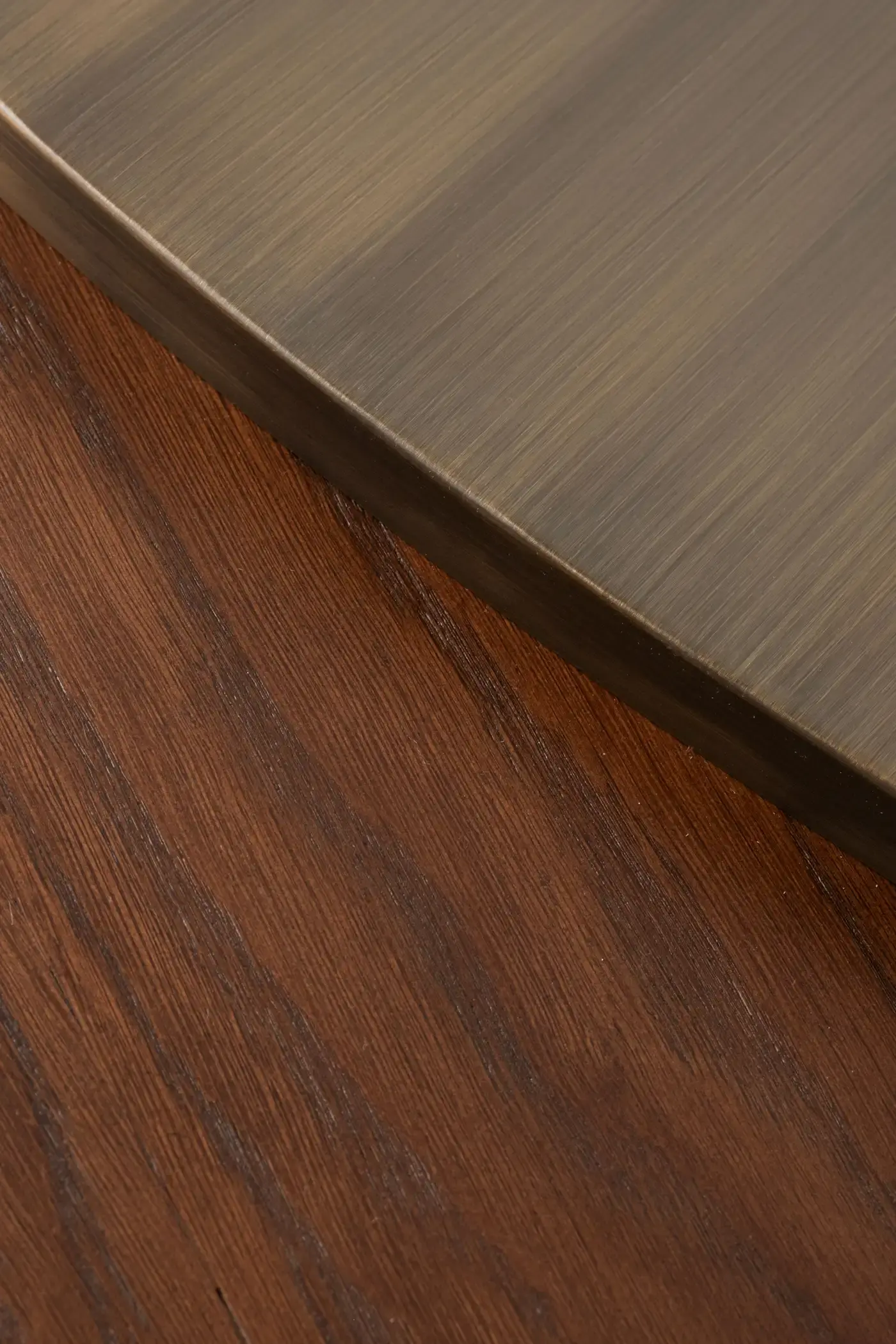 A brushed dark antique-brass in matte finish adds contrast to the design.